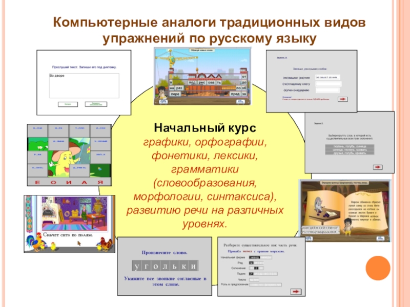 Компьютерные аналоги традиционных видов упражнений по русскому языку