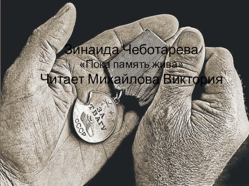 Слайд 19Зинаида Чеботарева «Пока память жива» Читает Михайлова Виктория