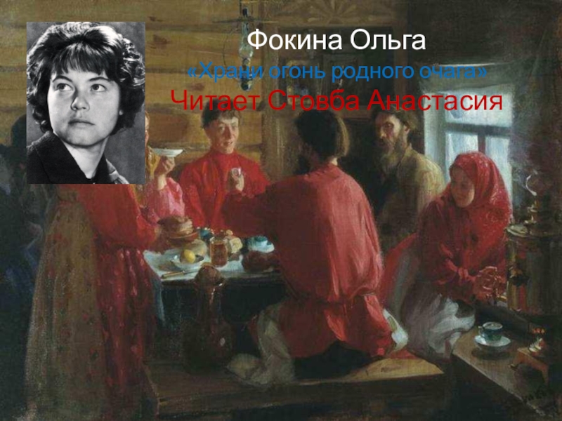 Слайд 8Фокина Ольга «Храни огонь родного очага» Читает Стовба Анастасия