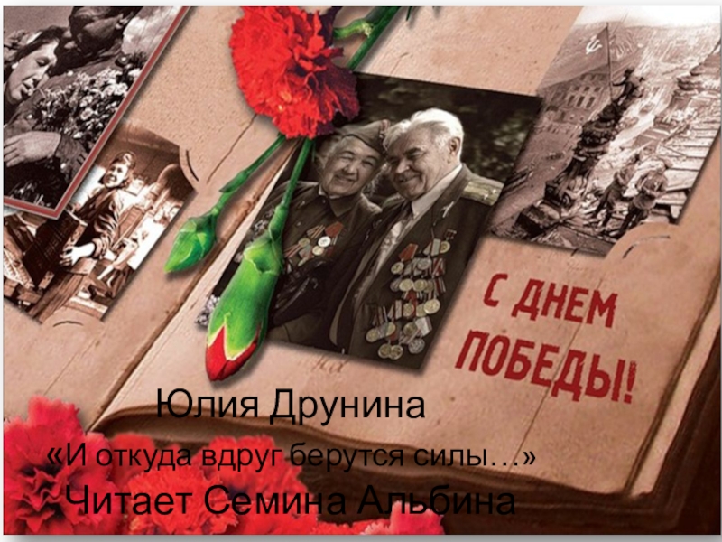 Слайд 16Юлия Друнина «И откуда вдруг берутся силы…» Читает Семина Альбина