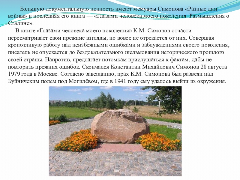 Слайд 13 Большую документальную ценность имеют мемуары Симонова «Разные