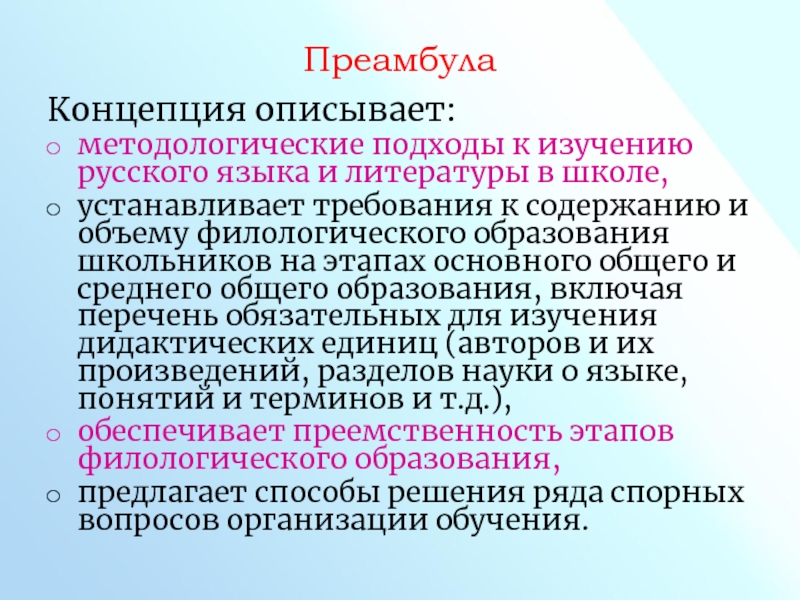 устанавливает требования к содержанию и объему филологического образования школьников на этапах основного общего и среднего общего образования, включая перечень обязательных для изучения дидактических единиц (авторов и их произведений, разделов науки о языке, понятий и терминов и т.д.),