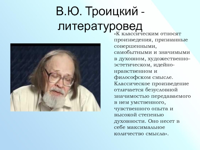 «К классическим относят произведения, признанные совершенными, самобытными и