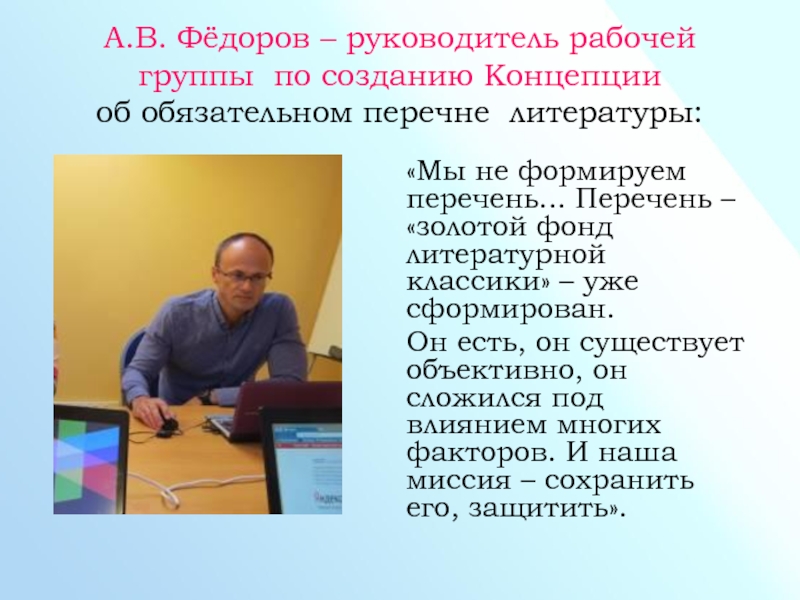 Слайд 16А.В. Фёдоров – руководитель рабочей группы по созданию Концепции