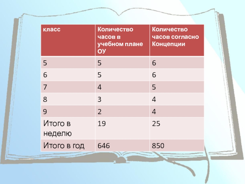 не менее 850 учебных часов в основной школе (5-9 классы) и