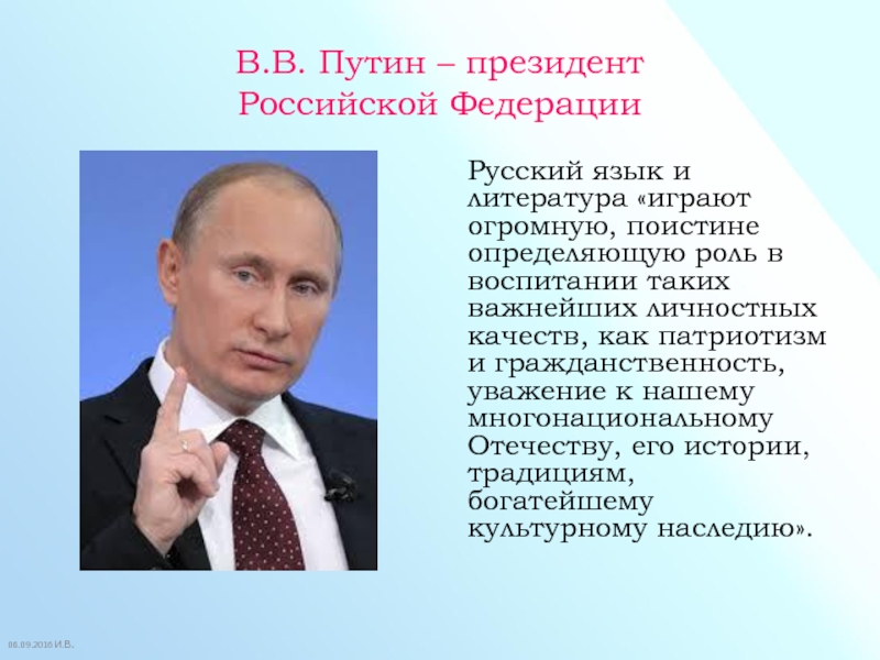 поистине определяющую роль в воспитании таких важнейших личностных качеств, как патриотизм и гражданственность, уважение к нашему многонациональному Отечеству, его истории, традициям, богатейшему культурному наследию».