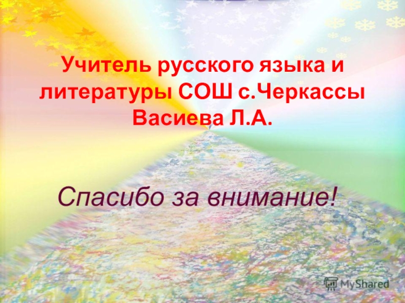 Слайд 18 Учитель русского языка и литературы СОШ с.Черкассы Васиева Л.А.