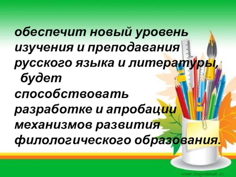 Слайд 17 обеспечит новый уровень изучения и преподавания русского языка и литературы, будет