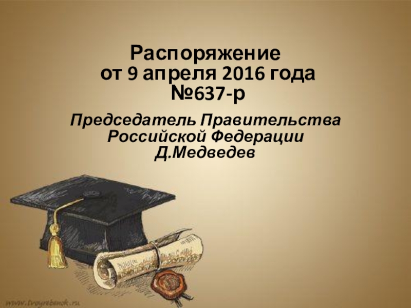 Распоряжение от 9 апреля 2016 года №637-р Председатель Правительства Российской ФедерацииД.Медведев