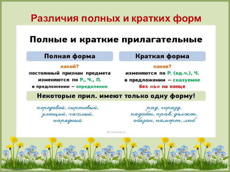 Краткая и полная форма имен прилагательныхПрезентация Гаршиной Софьи