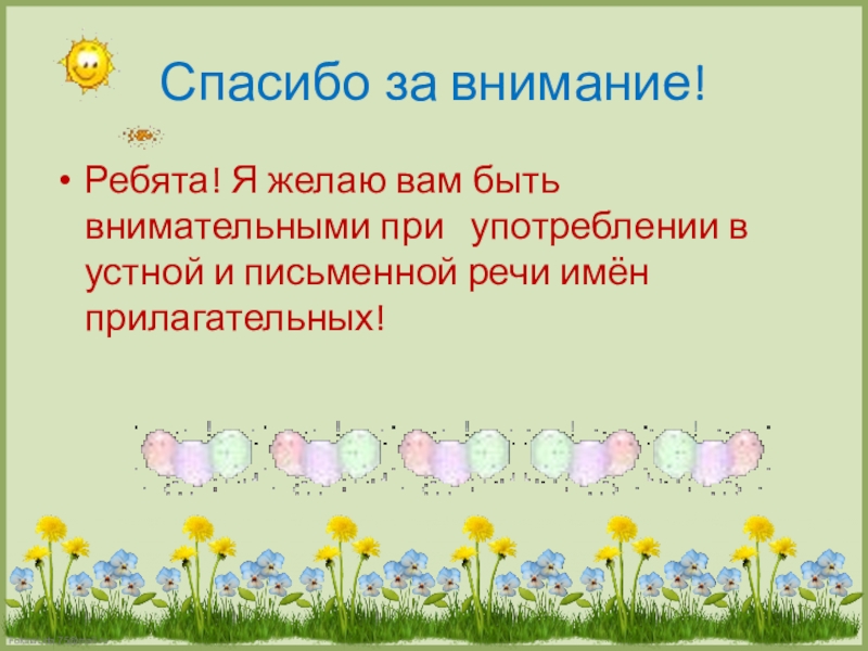 Спасибо за внимание!Ребята! Я желаю вам быть внимательными при  употреблении в устной и письменной речи имён