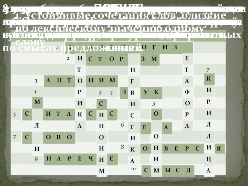3 по вертикали. Слова различные по звучанию, но одинаковые или близкие по лексическому значению