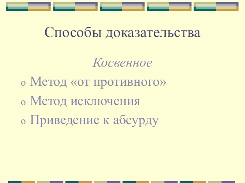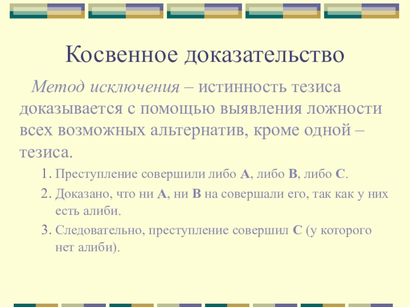 помощью выявления ложности всех возможных альтернатив, кроме одной – тезиса.