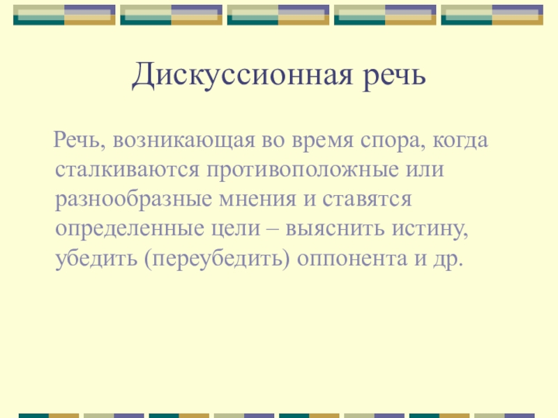 или разнообразные мнения и ставятся определенные цели – выяснить истину, убедить (переубедить) оппонента и др.