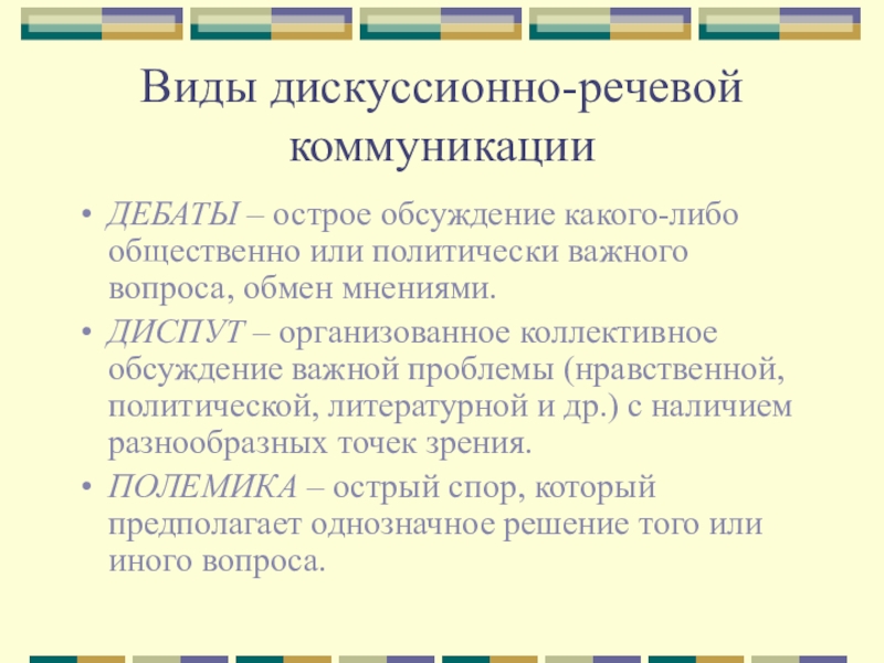 Слайд 8Виды дискуссионно-речевой коммуникации