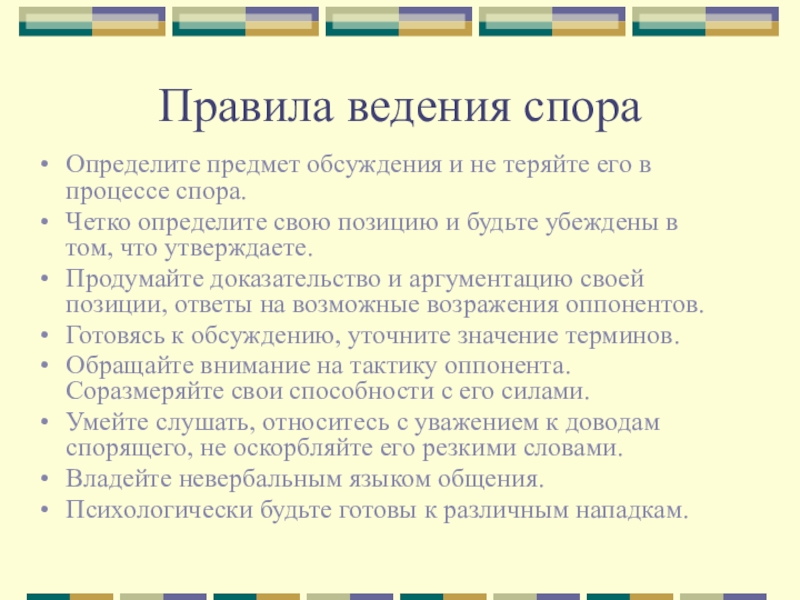 Умейте слушать, относитесь с уважением к доводам спорящего, не оскорбляйте его резкими словами.