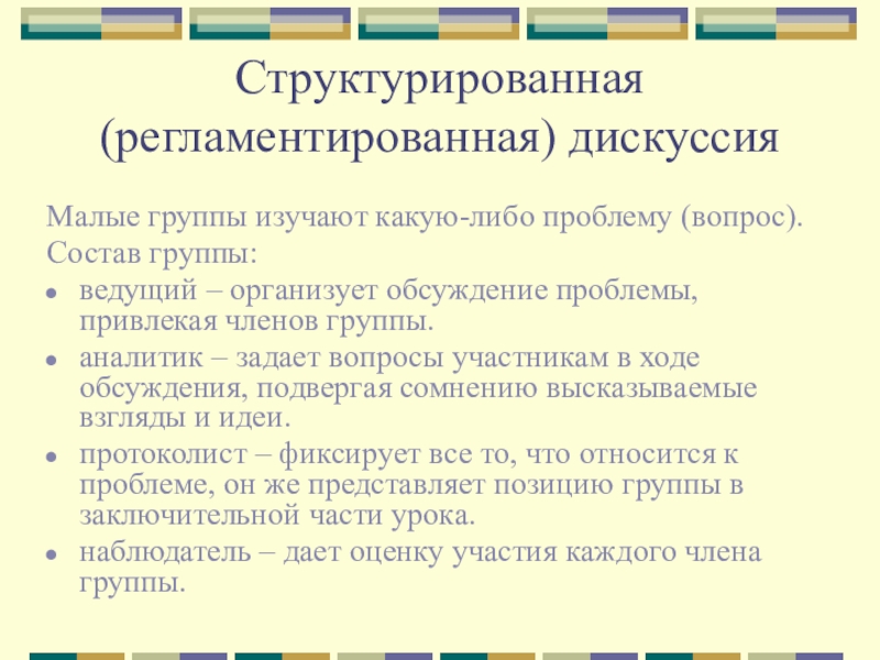 аналитик – задает вопросы участникам в ходе обсуждения, подвергая сомнению высказываемые взгляды и идеи.