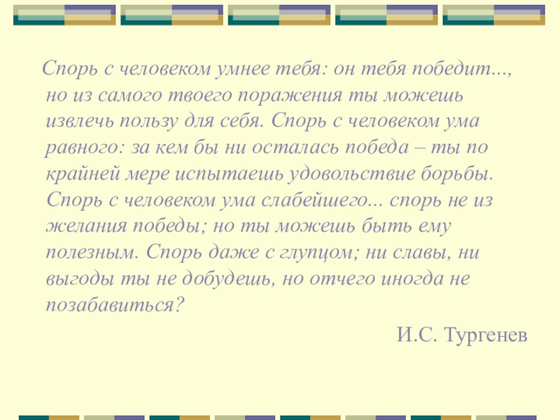 Слайд 2 Спорь с человеком умнее тебя: он тебя победит..., но