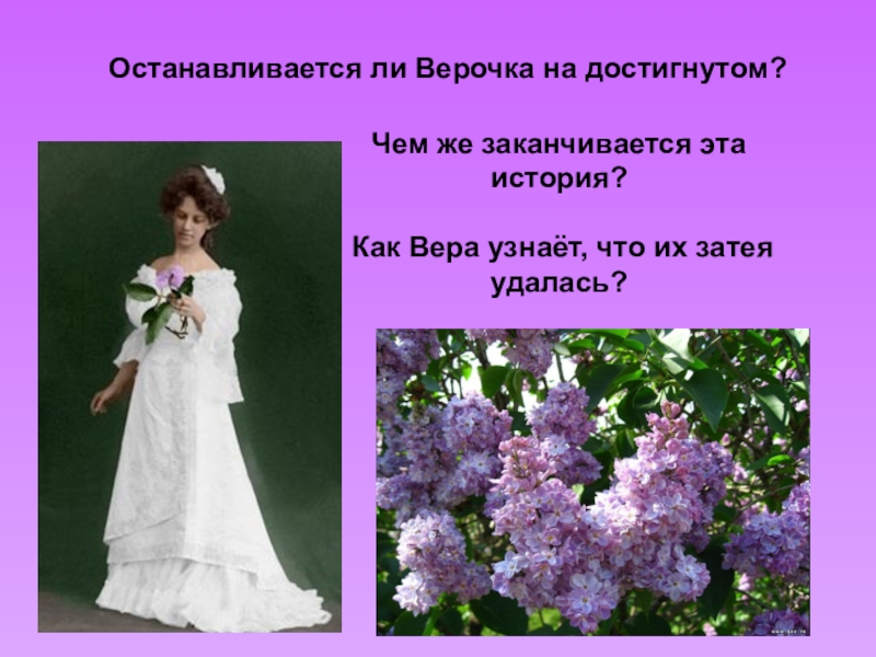 Он не поступил в Академию, и всё из-за пятна на чертеже. Они ищут выход, и Верочка находит его. Куст сирени, посаженный за городом, помог Алмазову поступить в Академию. Именно куст сирени приносит семье Алмазовых счастье и успокоение.
