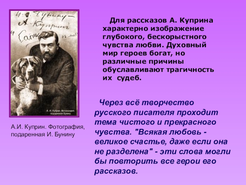Творчество А.Куприна связано с периодом конца XIX – начала XX веков. В это время завершает свой жизненный путь Л.Н. Толстой, раскрываются дарования А.П. Чехова, М. Горького, Короленко, И.А. Бунина, Л. Андреева.