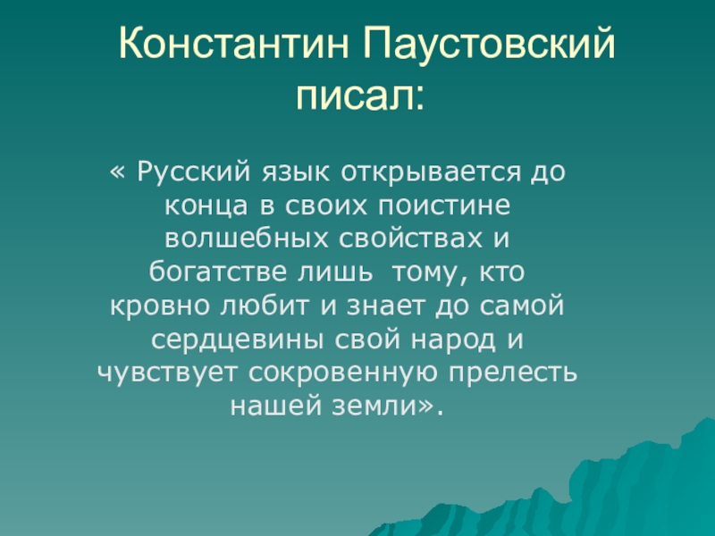 поистине волшебных свойствах и богатстве лишь тому, кто кровно любит и знает до самой сердцевины свой народ и чувствует сокровенную прелесть нашей земли».