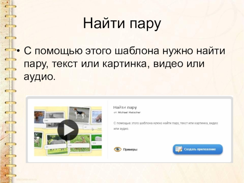 Найти паруС помощью этого шаблона нужно найти пару, текст или картинка, видео или аудио.