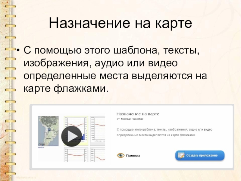 Назначение на картеС помощью этого шаблона, тексты, изображения, аудио или видео определенные места выделяются на карте флажками.