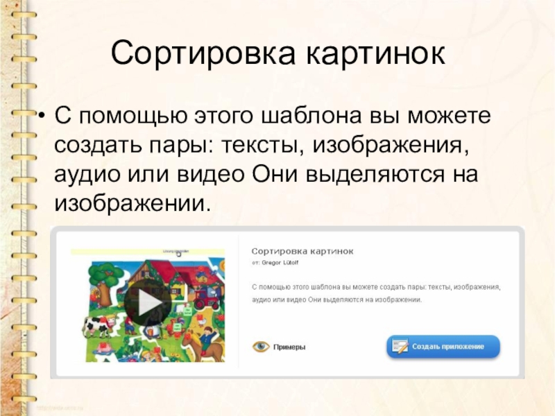 Сортировка картинокС помощью этого шаблона вы можете создать пары: тексты, изображения, аудио или видео Они выделяются на