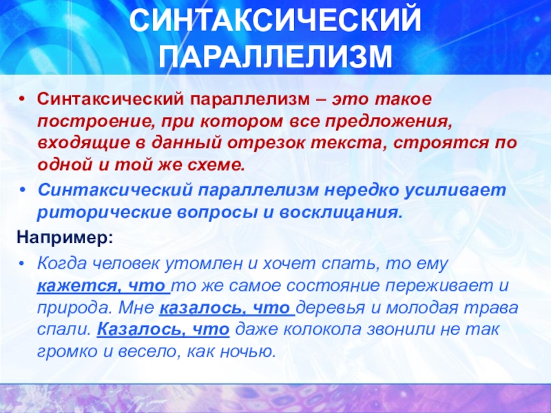 Слайд 11СИНТАКСИЧЕСКИЙ ПАРАЛЛЕЛИЗМ