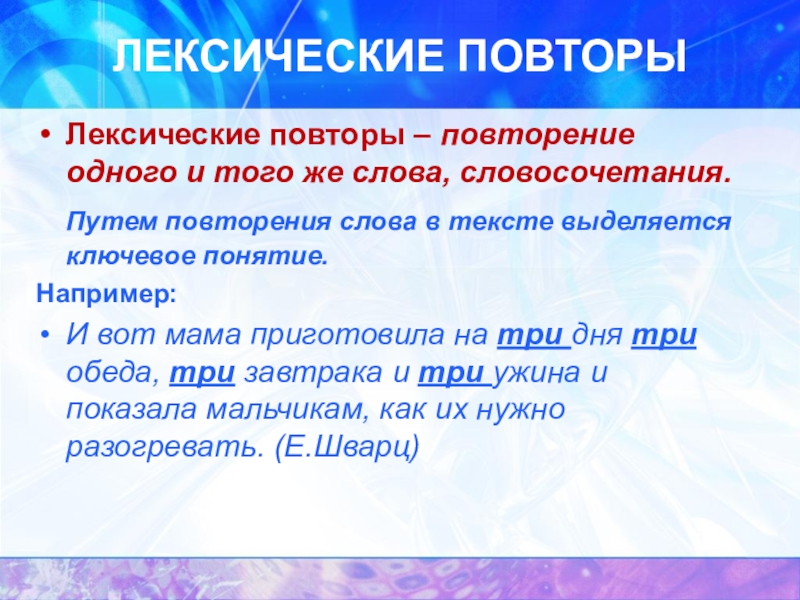 Слайд 8ЛЕКСИЧЕСКИЕ ПОВТОРЫ