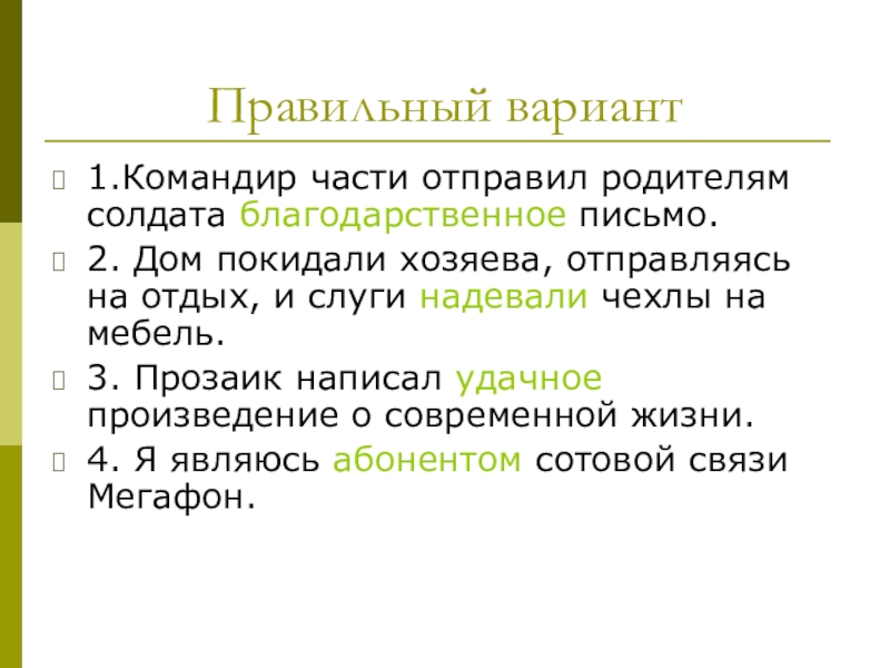 1.Командир части отправил родителям солдата благодарственное письмо.