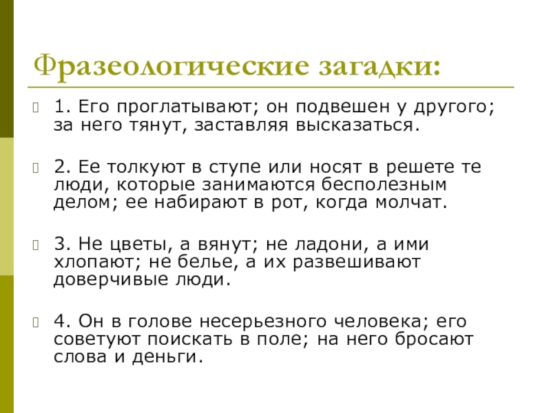 2. Ее толкуют в ступе или носят в решете те люди, которые занимаются бесполезным делом; ее набирают в рот, когда молчат.