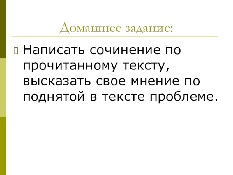 Написать сочинение по прочитанному тексту, высказать свое мнение по поднятой
