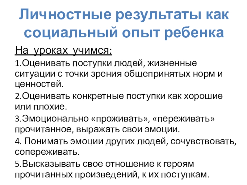 1.Оценивание поступков (своих и других людей, литературных персонажей)и их объяснение.
