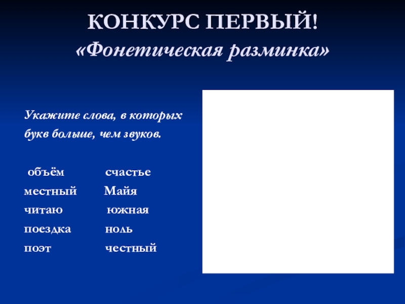 Слайд 3КОНКУРС ПЕРВЫЙ! «Фонетическая разминка»