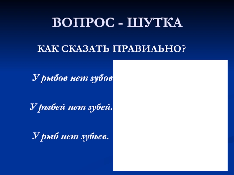 ВОПРОС - ШУТКА     КАК СКАЗАТЬ ПРАВИЛЬНО?    У рыбов нет зубов.