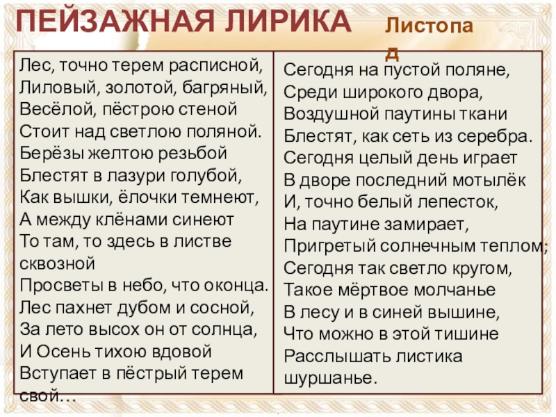 ПЕЙЗАЖНАЯ ЛИРИКА