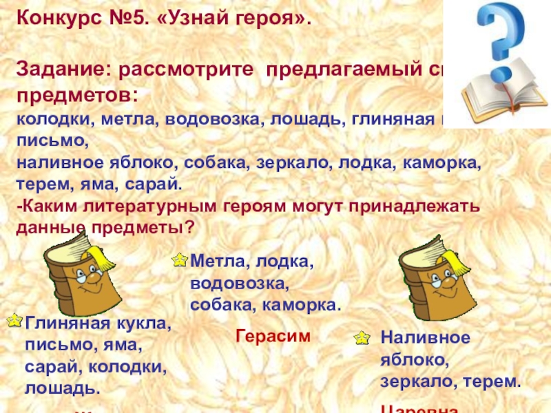 2 герой: корыто, хлопчато – бумажный платок, прачечная.
