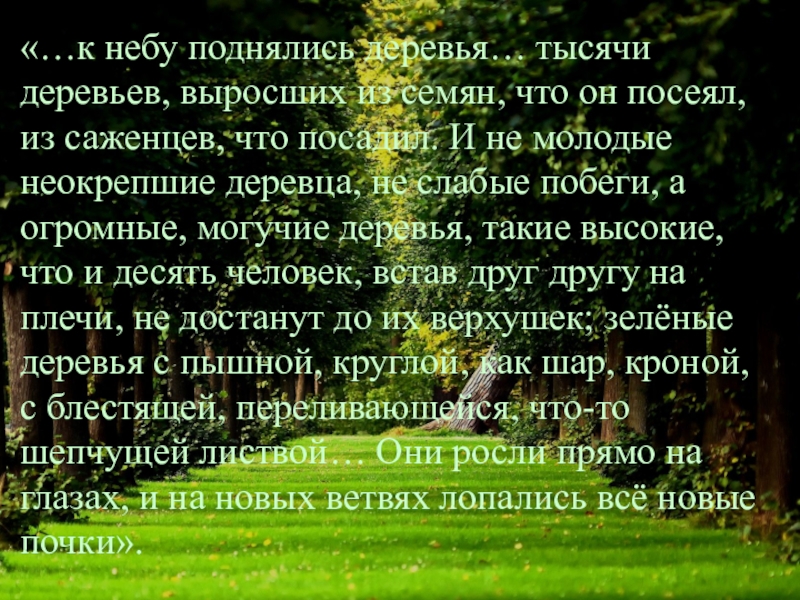 Слайд 24«…к небу поднялись деревья… тысячи деревьев, выросших из семян, что он