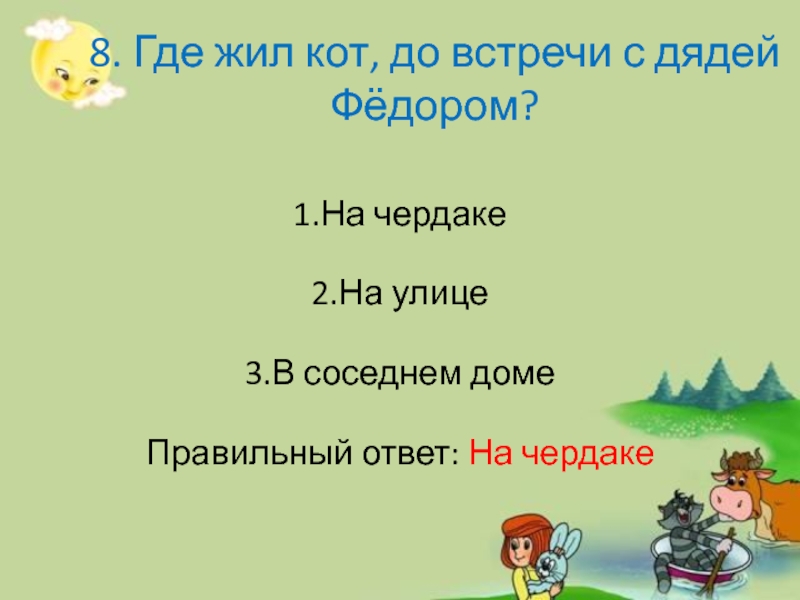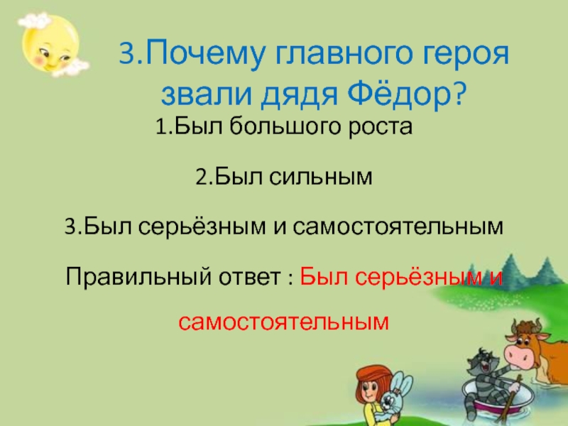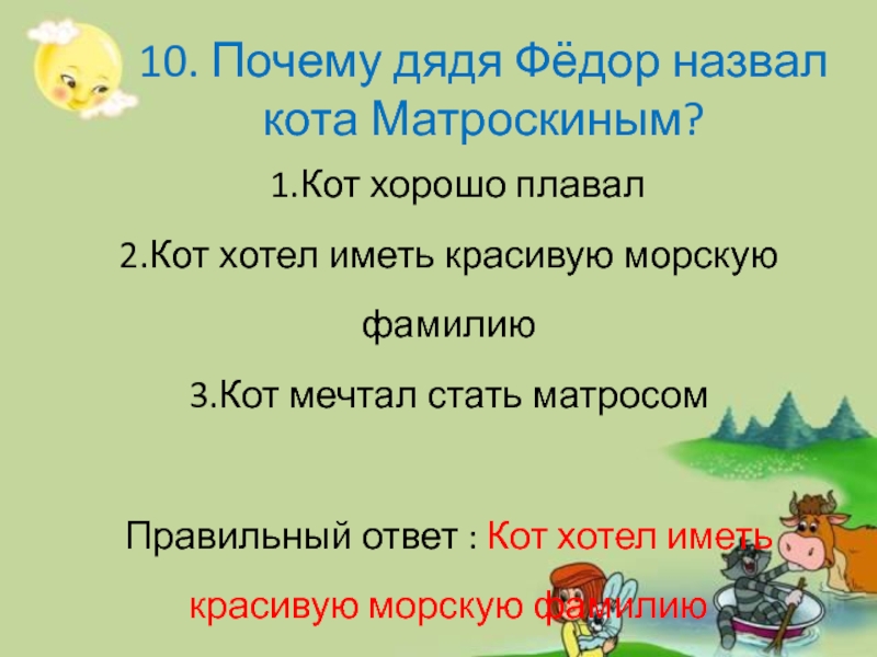 10. Почему дядя Фёдор назвал кота Матроскиным?