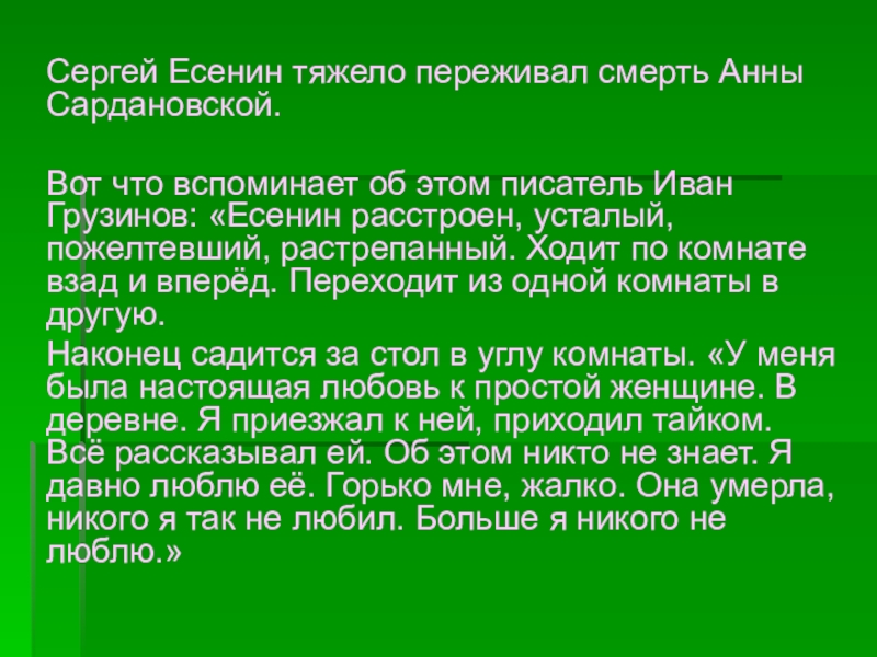 Слайд 8Сергей Есенин тяжело переживал смерть Анны Сардановской.