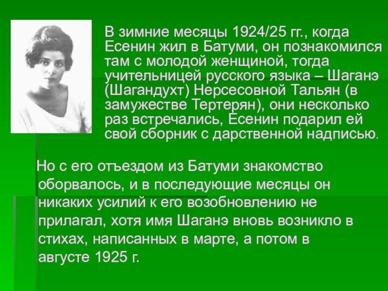 Слайд 6Сардановская (в замужестве Олоновская) Анна Алексеевна (1896-1921), юношеское увлечение Есенина, учительница,