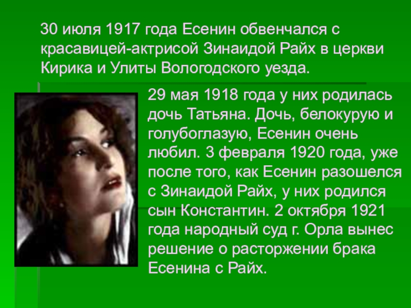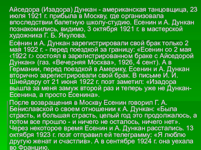 Слайд 38 В августе 1923 года произошла встреча Есенина с актрисой