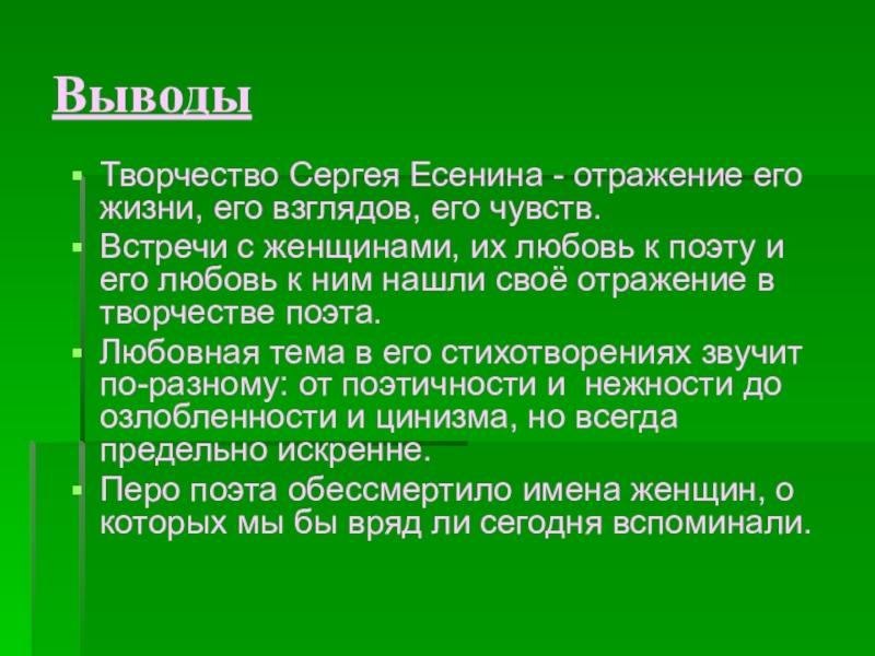 Творчество Сергея Есенина - отражение его жизни, его взглядов, его чувств.