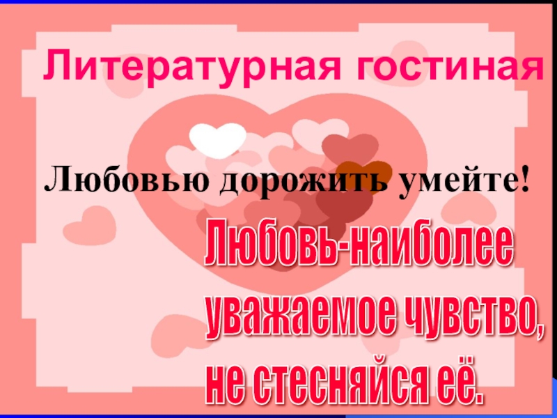 Литературная гостинаяЛюбовью дорожить умейте!Любовь-наиболее  уважаемое чувство,  не стесняйся её.