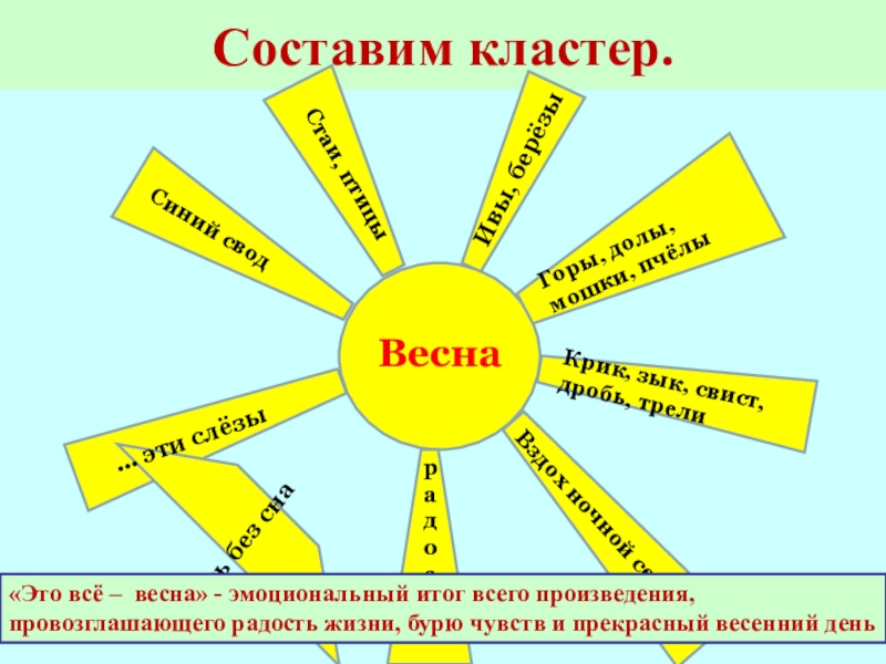 «Это всё – весна» - эмоциональный итог всего произведения, провозглашающего радость жизни, бурю чувств и прекрасный весенний день