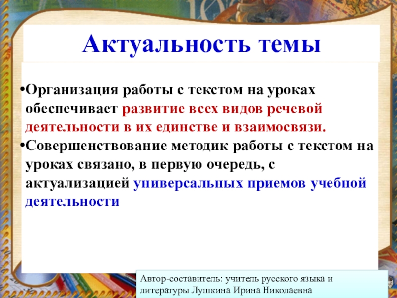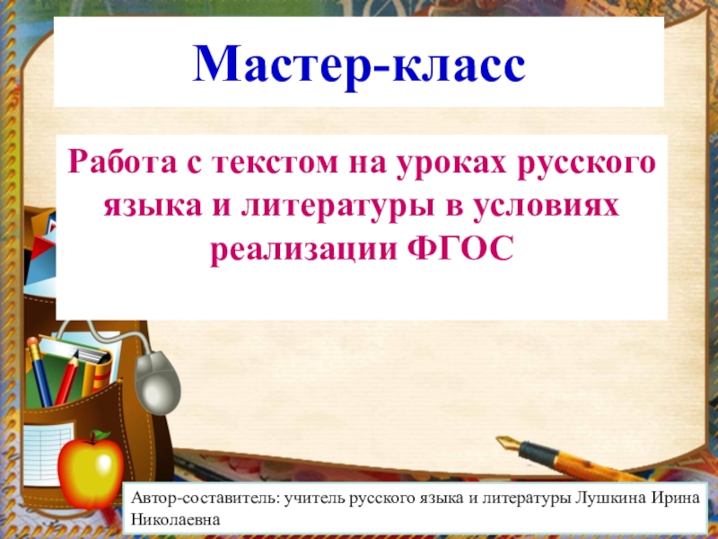Автор-составитель: учитель русского языка и литературы Лушкина Ирина Николаевна