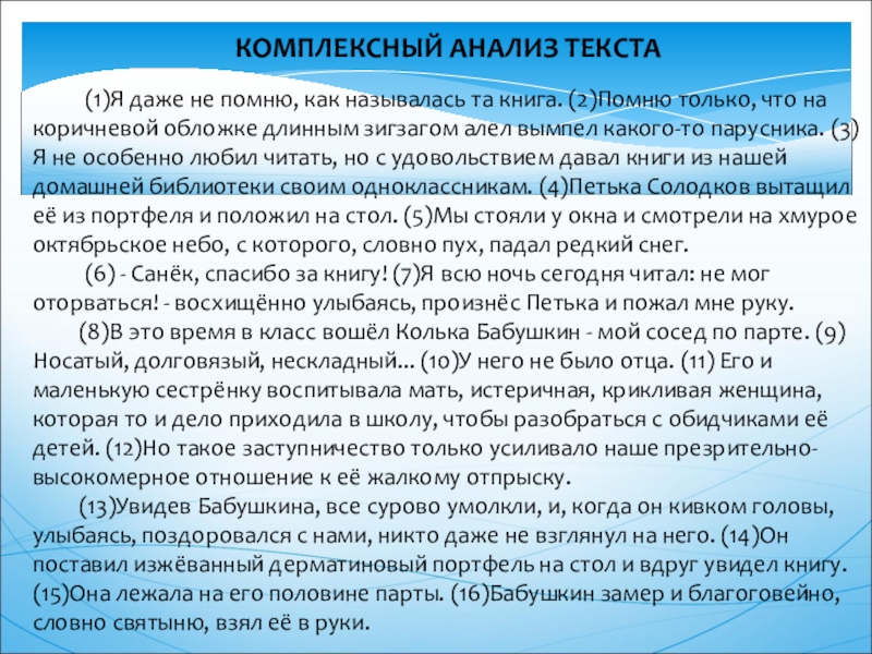 текст для комплексного анализа «Я даже не помню, как называлась та книга…» В.И. Дроганова;