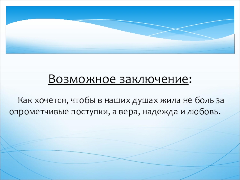 не боль за опрометчивые поступки, а вера, надежда и любовь.