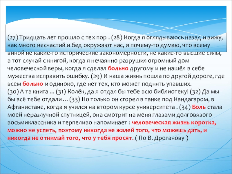 Д/З: Ваш ДОЛГ, ребята, написать сочинение по данному тексту.